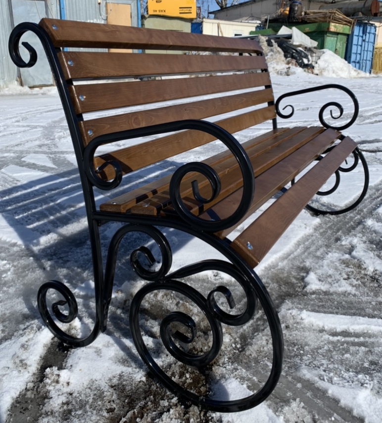 Металлическая скамейка «Вдохновение» — это модель для тех пространств, где важны не только удобство и прочность, но и настроение. Её плавные кованые завитки, изящные подлокотники и тёплый оттенок древесины создают образ ухоженного парка, уютной аллеи или красивого двора, в котором хочется задержаться подольше: присесть вечером после работы, поговорить, сделать паузу в течение прогулки или просто насладиться тишиной. Такая скамейка органично смотрится у подъезда современного ЖК, в сквере, на территории базы отдыха, у офисного центра и даже возле частного дома, где важно совместить декоративность и практичность.