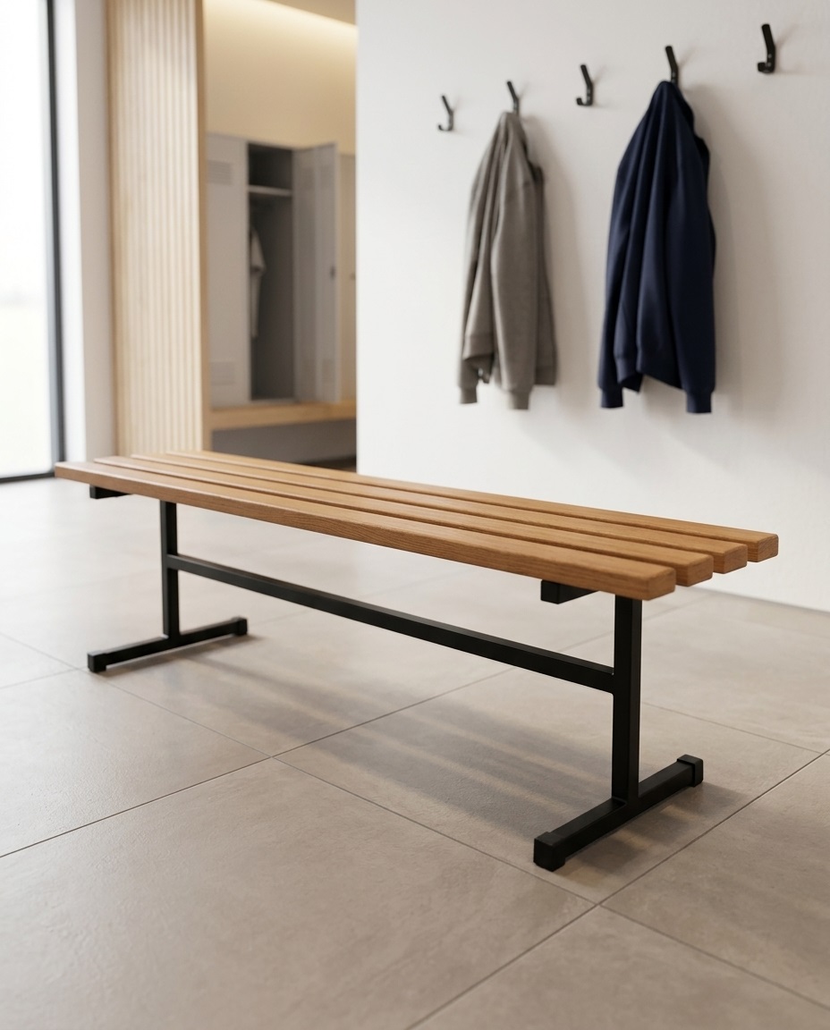 Базовая длина 1,5 м позволяет разместить несколько человек, а отсутствие спинки делает модель универсальной: её удобно ставить вдоль стен, у раздевалочных шкафов, рядом с мангалом или на садовой площадке.