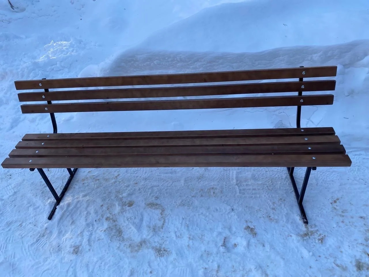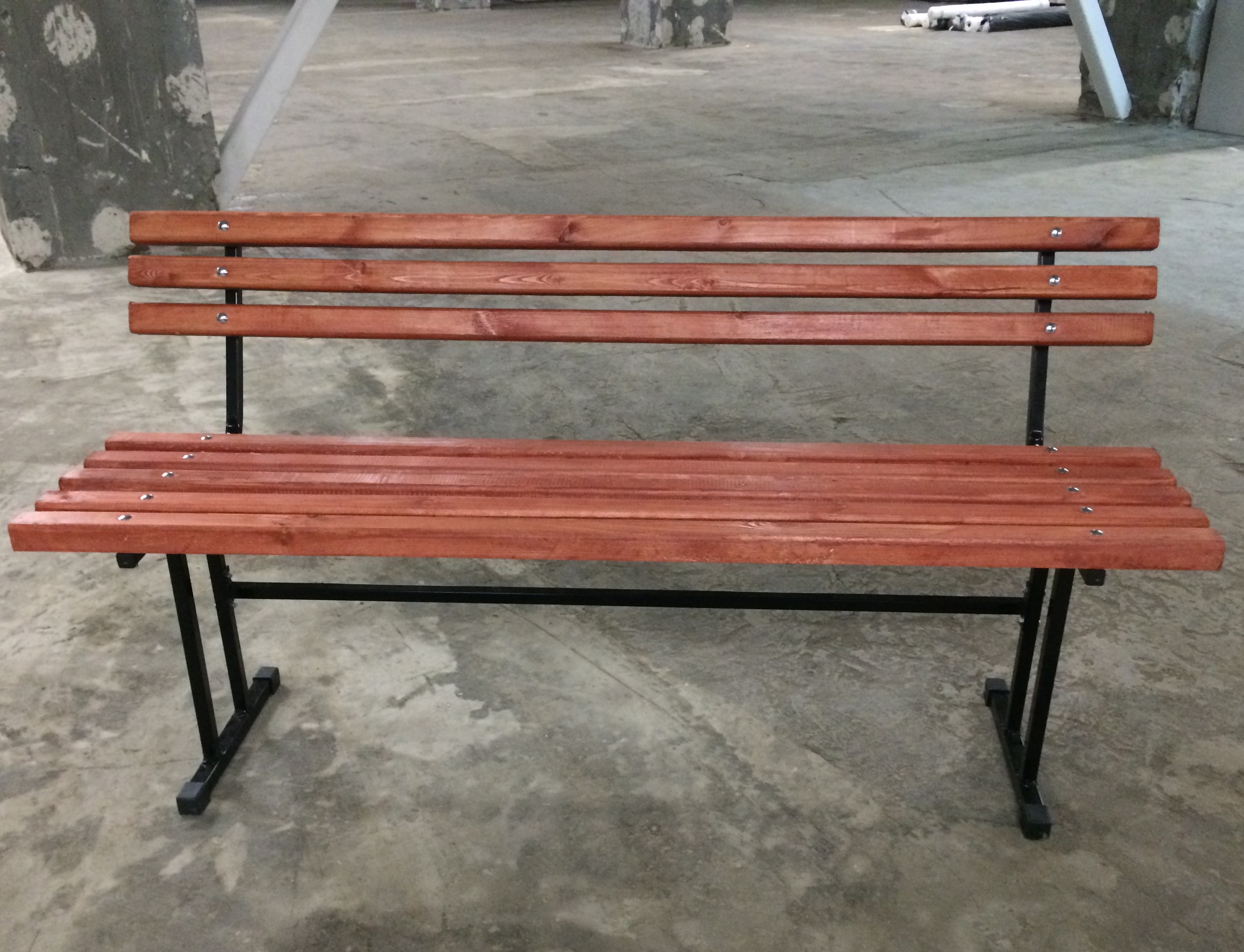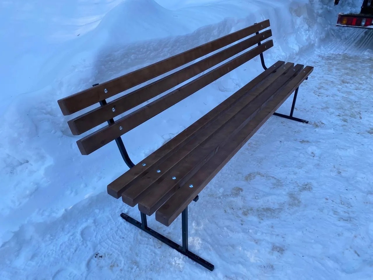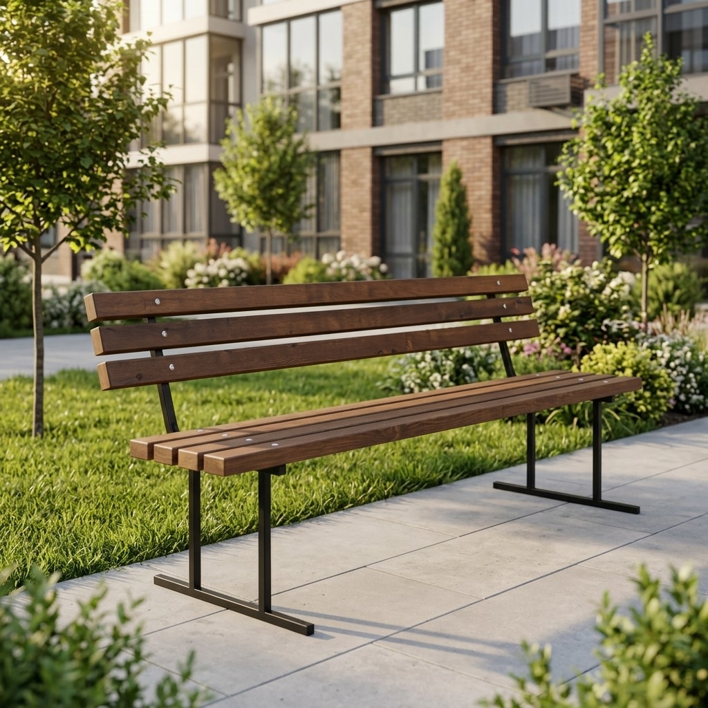 Жёсткий каркас из металлического профиля с полимерным покрытием обеспечивает устойчивость и аккуратный внешний вид, а сиденье и спинка из хвойных брусков создают ощущение тепла и комфорта. Дерево дополнительно пропитано антисептиком и тонирующими составами, поэтому скамья выдерживает регулярное использование и сохраняет цвет.