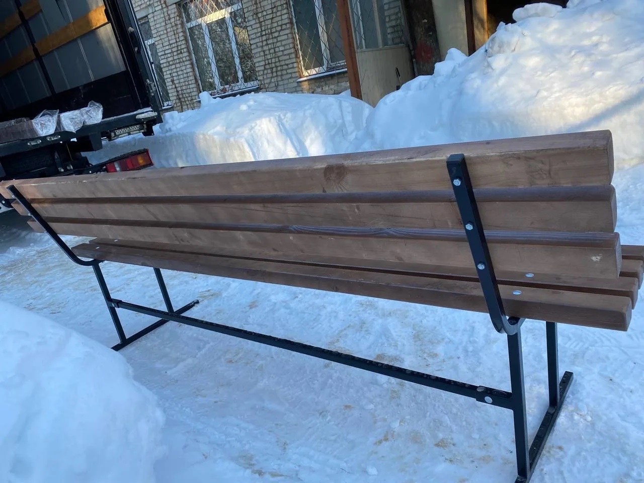 Поставка осуществляется в разобранном виде, при желании можно заказать сборку на объекте — услуга оплачивается отдельно и стоит 1500 руб. за одну скамью.